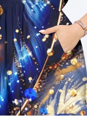Graphic Dresses > Plus Size Metallic Feather Galaxy Glitter Sparkling Sequin 3D Print Split Hawaii Midi Dress