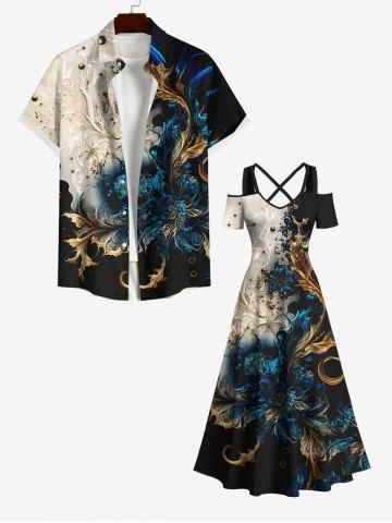 Colorblock Metallic Floral Pearl 3D Print Plus Size Matching Hawaii Beach Outfit For Couples