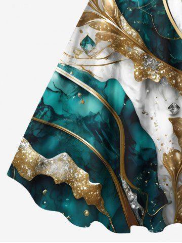 Plus Size Metallic Leaf Diamond Print Hawaii Tank Dress - Green - Xs