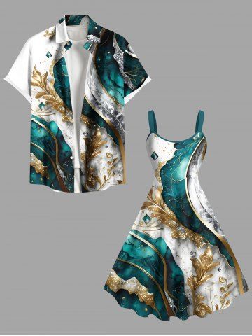 Plus Size Metallic Leaf Diamond Print Hawaii Tank Dress - Green - 1x