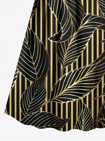Plus Size Metallic Leaf Stripes Print Surplice Hawaii Cami Dress - Black - S