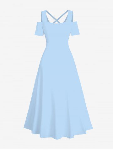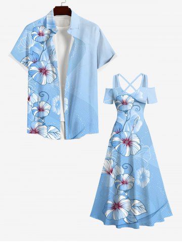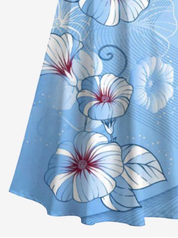 Plus Size Morning Glory Flower Curve Line Print Hawaii Ombre Crisscross A Line Maxi Dress - Blue - 2x
