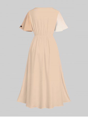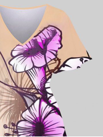 Plus Size Morning Glory Flower Leaf Print Hawaii Ombre Split Pocket A Line Midi Dress - Multi-a - 3x