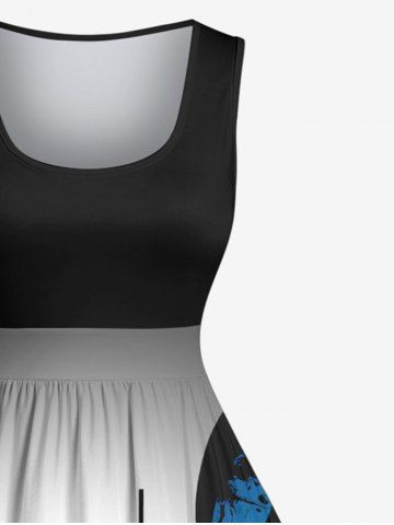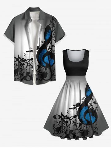 Plus Size Music Notes Ombre Print 1950s Vintage Dress - Black - M