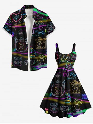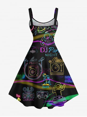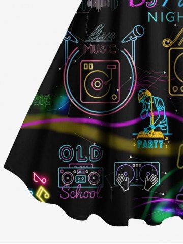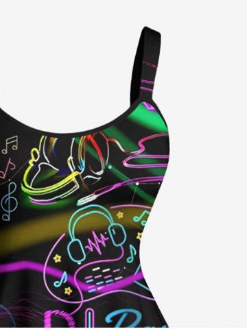 Plus Size Music Party Microphone Earphone Heart Print Hawaii Tank Dress - Black - 2x