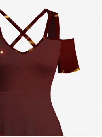 Plus Size Music Symbol Glitter Stars Print Cold Shoulder Crisscross A Line Maxi Dress - Deep Coffee - 4x