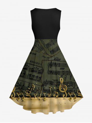 Plus Size Music Symbol Print Hawaii Ombre 1950s Vintage Swing A Line Dress - Black - 3x