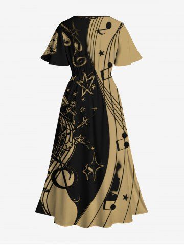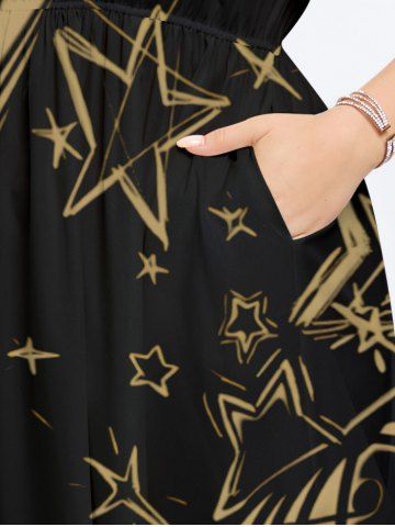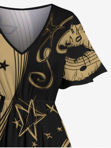 Plus Size Music Symbol Star Two Tone Lip Print Hawaii Split Pocket A Line Midi Dress - Black - 2x