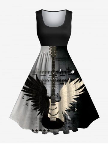 Graphic Dresses > Plus Size Musical Festival Guitar Wings Music Notes Print 1950s Vintage Dress