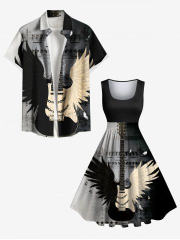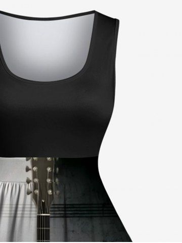 Plus Size Musical Festival Guitar Wings Music Notes Print 1950s Vintage Dress - Black - L