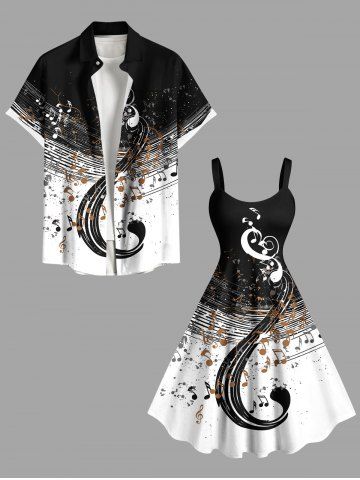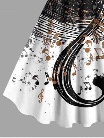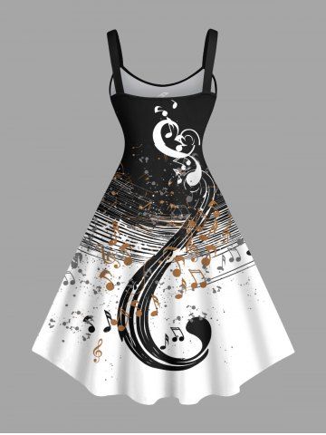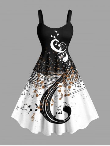 Plus Size Musical Notes Colorblock Print Hawaii Tank Dress - Black - 3x