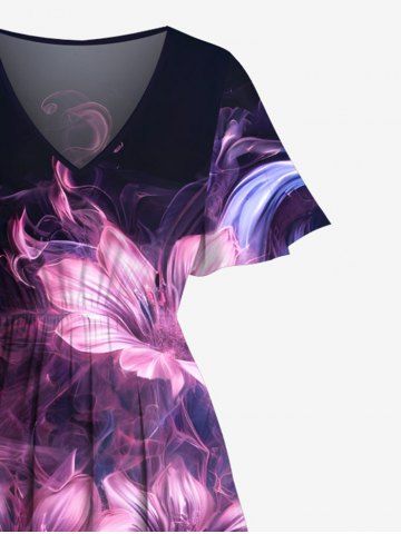 Graphic Dresses > Plus Size Mysterious Flowers Glitter 3D Print Split Hawaii Midi Dress