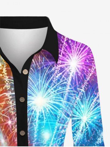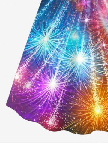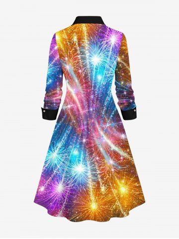 Graphic Dresses > Plus Size New Year Colorful Fireworks Glitter Sparkling Sequin 3D Print Buttons Shirt Dress