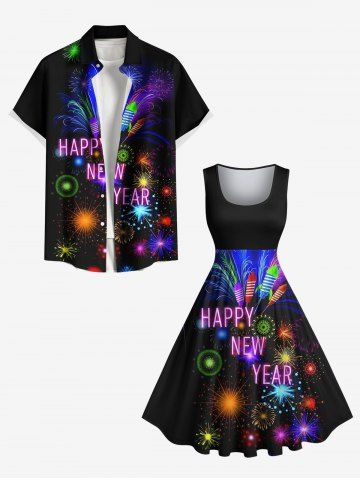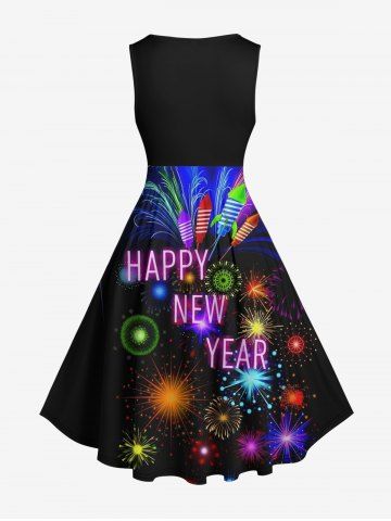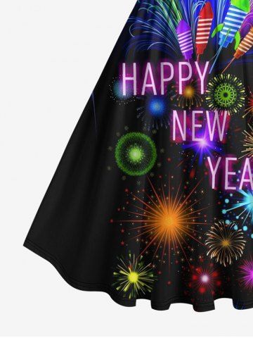 Plus Size New Years Party Colorful Fireworks Letters Print 1950s Vintage Dress - Black - S