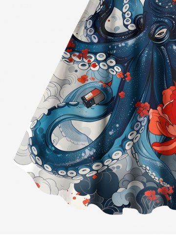Graphic Dresses > Plus Size Octopus Flower Cloud Print Hawaii A Line Tank Dress