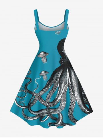 Graphic Dresses > Plus Size Octopus Jellyfish Print Hawaii Sea Creatures A Line Tank Dress