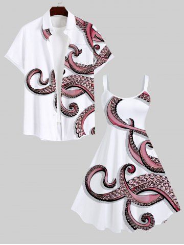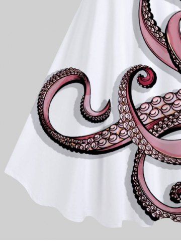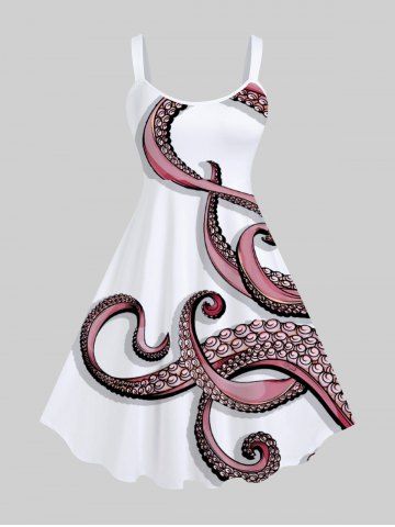 Plus Size Octopus Print Hawaii A Line Tank Dress - White - 6x
