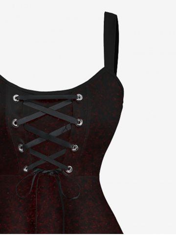 Plus Size Octopus Print Hawaii Lace Up A Line Dress - Black - 1x