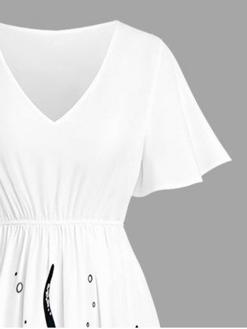 Plus Size Octopus Print Hawaii Split Pocket A Line Midi Dress - White - M