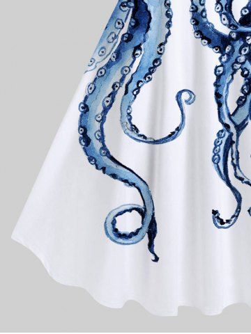 Plus Size Octopus Print Hawaii Tank Dress - White - 4x