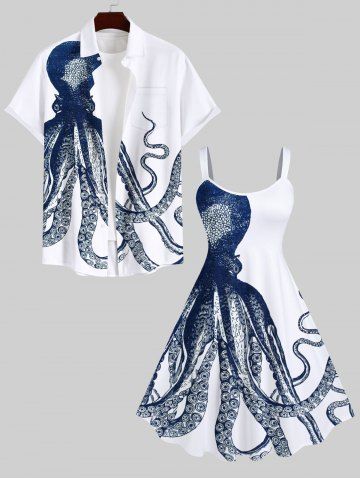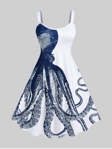 Plus Size Octopus Print Hawaii Tank Dress - White - 6x