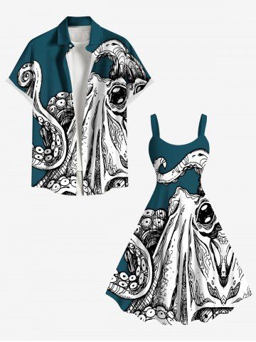 Graphic Dresses > Plus Size Octopus Print Hawaii Tank Dress