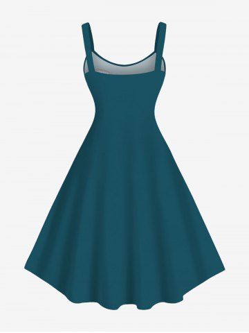 Plus Size Octopus Print Hawaii Tank Dress - Deep Green - 2x