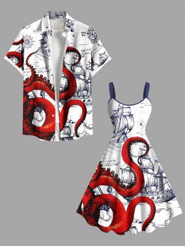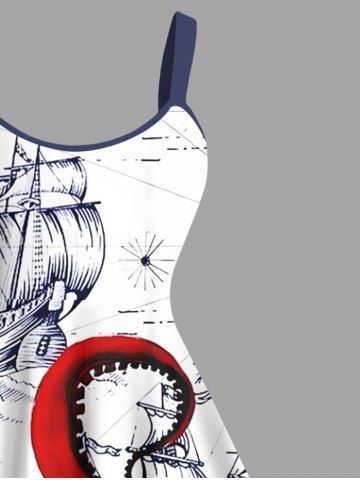 Plus Size Octopus Sailboat Print Hawaii Cruise A Line Tank Dress - White - 6x