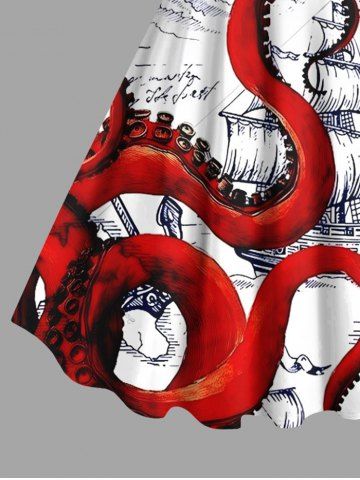Graphic Dresses > Plus Size Octopus Sailboat Print Hawaii Cruise A Line Tank Dress