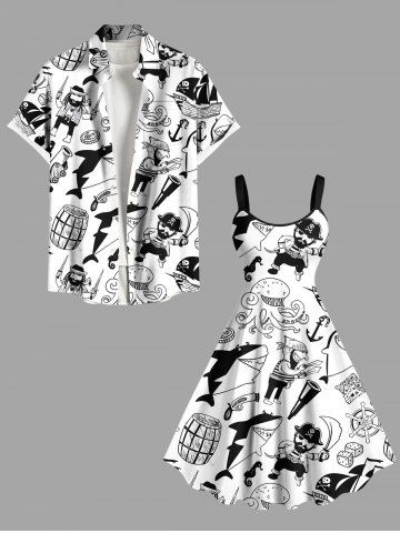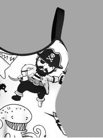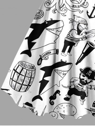 Plus Size Octopus Shark Anchor Pirate Print Hawaii Cruise A Line Tank Dress - White - 5x
