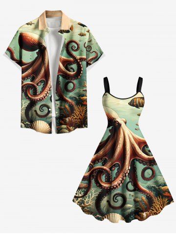 Graphic Dresses > Plus Size Octopus Shell Coral Fish Print Hawaii Sea Creatures A Line Tank Dress
