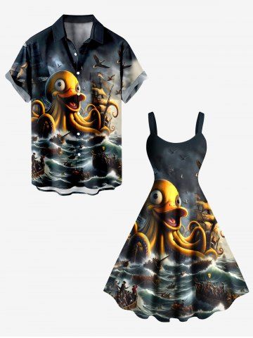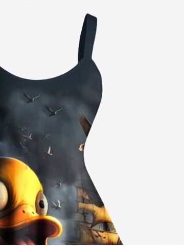 Plus Size Octopus Ship Sea Waves Cruise Print Hawaii Tank Dress - Black - S