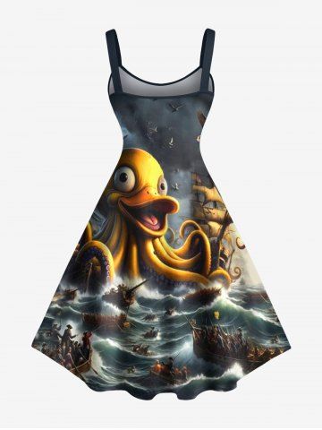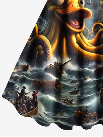 Graphic Dresses > Plus Size Octopus Ship Sea Waves Cruise Print Hawaii Tank Dress