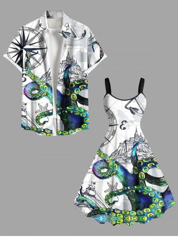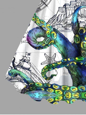 Plus Size Octopus Starfish Anchor Castle Print Hawaii Tank Dress - White - Xs