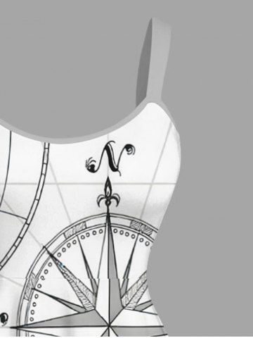 Plus Size Octopus Starfish Lighthouse Sea Waves Ship Rudder Cruise Print Hawaii Tank Dress - White - 2x