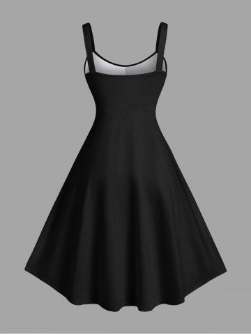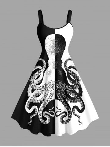 Plus Size Octopus Two Tone Contrast Colorblock Print Hawaii Tank Dress - Black - 6x