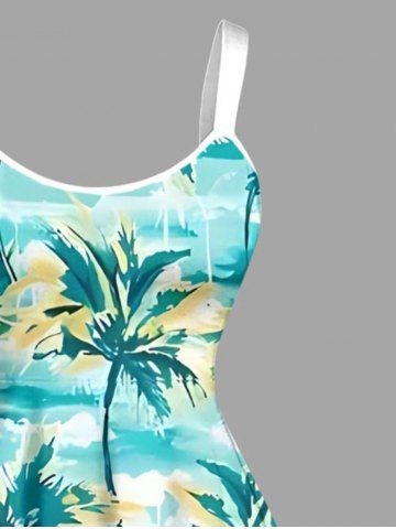 Plus Size Oil Painting Coconut Tree Print Hawaii Tank Dress - Turquoise - S