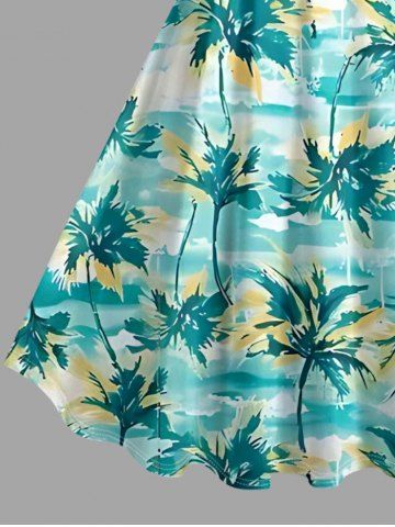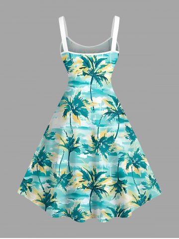 Plus Size Oil Painting Coconut Tree Print Hawaii Tank Dress - Turquoise - 5x