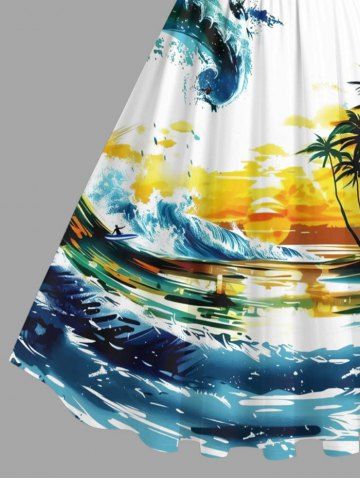 Graphic Dresses > Plus Size Oil Painting Coconut Tree Sea Waves Sunset Print Hawaii 1950s Vintage Dress