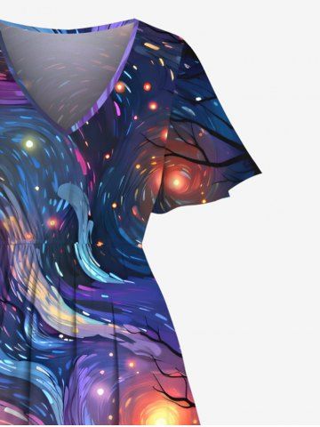 Plus Size Oil Painting Galaxy Moon Trees Bridge Print Split Hawaii Midi Dress - Multi-a - 4x
