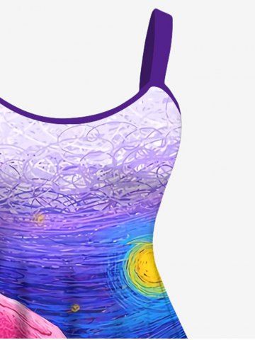 Hawaii Plus Size Oil Painting Sea Creatures Wave Sun Shark Print Tank Dress - Multi-a - 6x