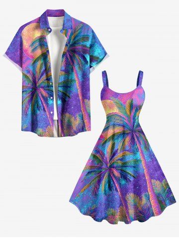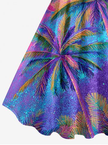 Plus Size Ombre Coconut Tree Moon Print Hawaii A Line Dress - Light Purple - S