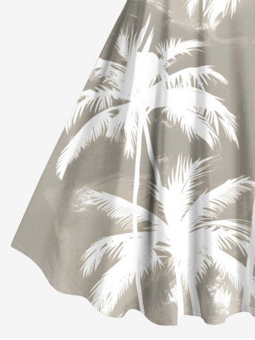Plus Size Ombre Coconut Tree Print Hawaii A Line Tank Dress - Beige - 3x