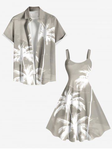 Plus Size Ombre Coconut Tree Print Hawaii A Line Tank Dress - Beige - 6x