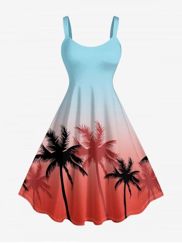 Graphic Dresses > Plus Size Ombre Coconut Tree Print Hawaii Tank Dress