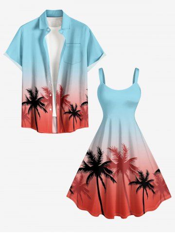 Plus Size Ombre Coconut Tree Print Hawaii Tank Dress - Sky Blue - 5x