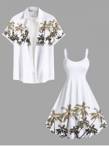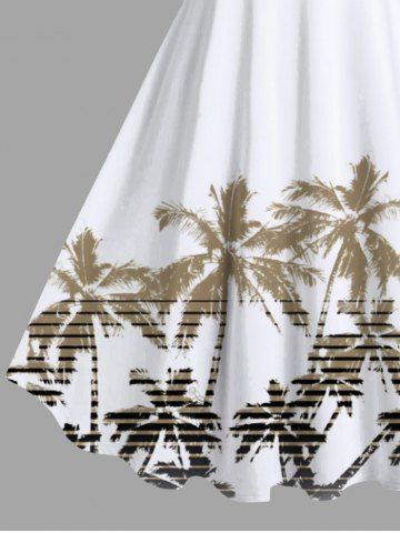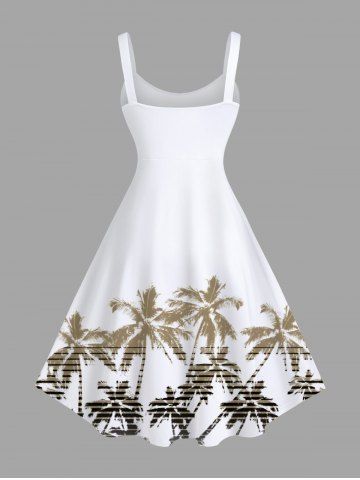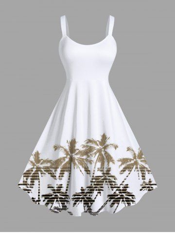 Plus Size Ombre Coconut Tree Synthwave Retrowave Print Hawaii A Line Tank Dress - White - Xxs