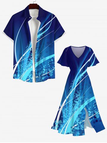 Plus Size Ombre Colorblock Glitter 3D Print Split Midi Dress - Blue - M