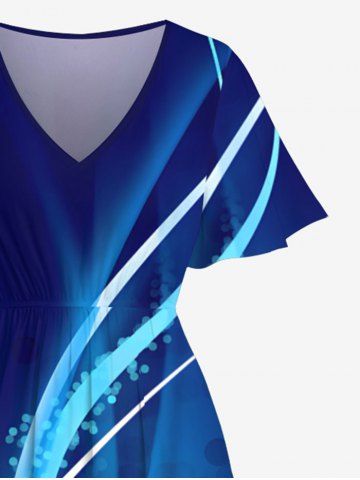 Plus Size Ombre Colorblock Glitter 3D Print Split Midi Dress - Blue - 5x