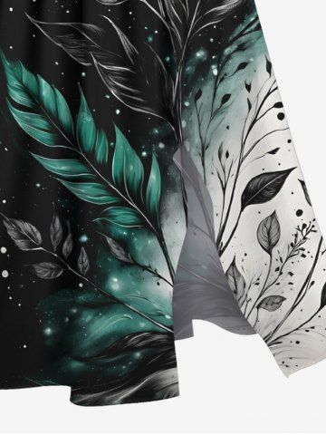 Plus Size Ombre Colorblock Leaf Ink Splatter Print Split Hawaii Midi Dress - Black - Xs
